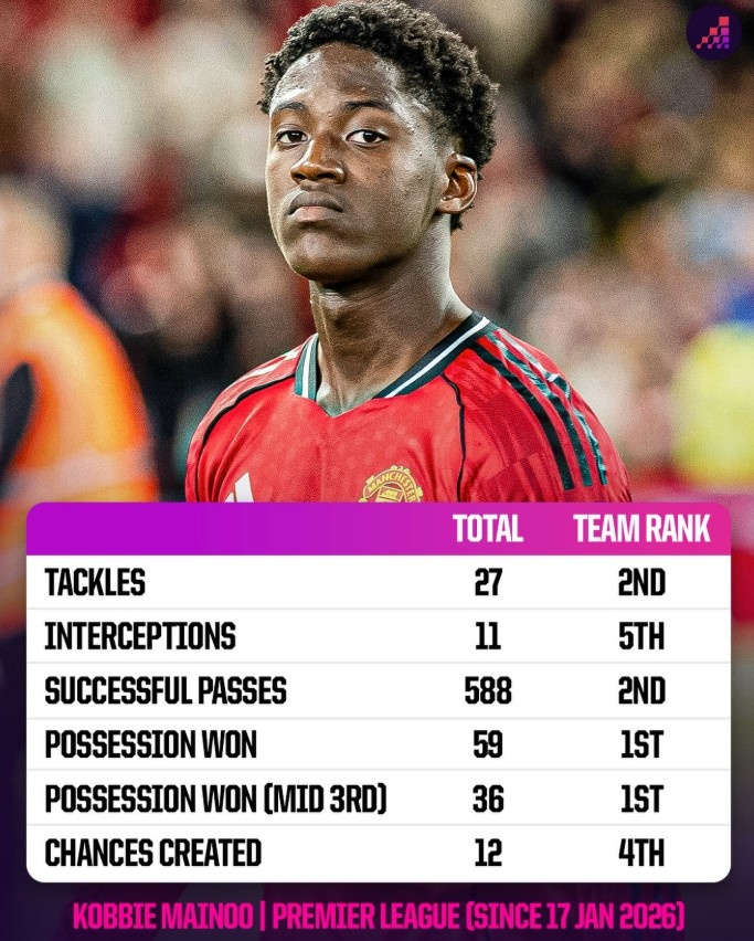 直播吧4月30日讯 曼联官方宣布与梅努续约,数据网站OPTA也盘点了梅努自今年1月17日以来的多项英超数据,均位列队内前列,具体如下: